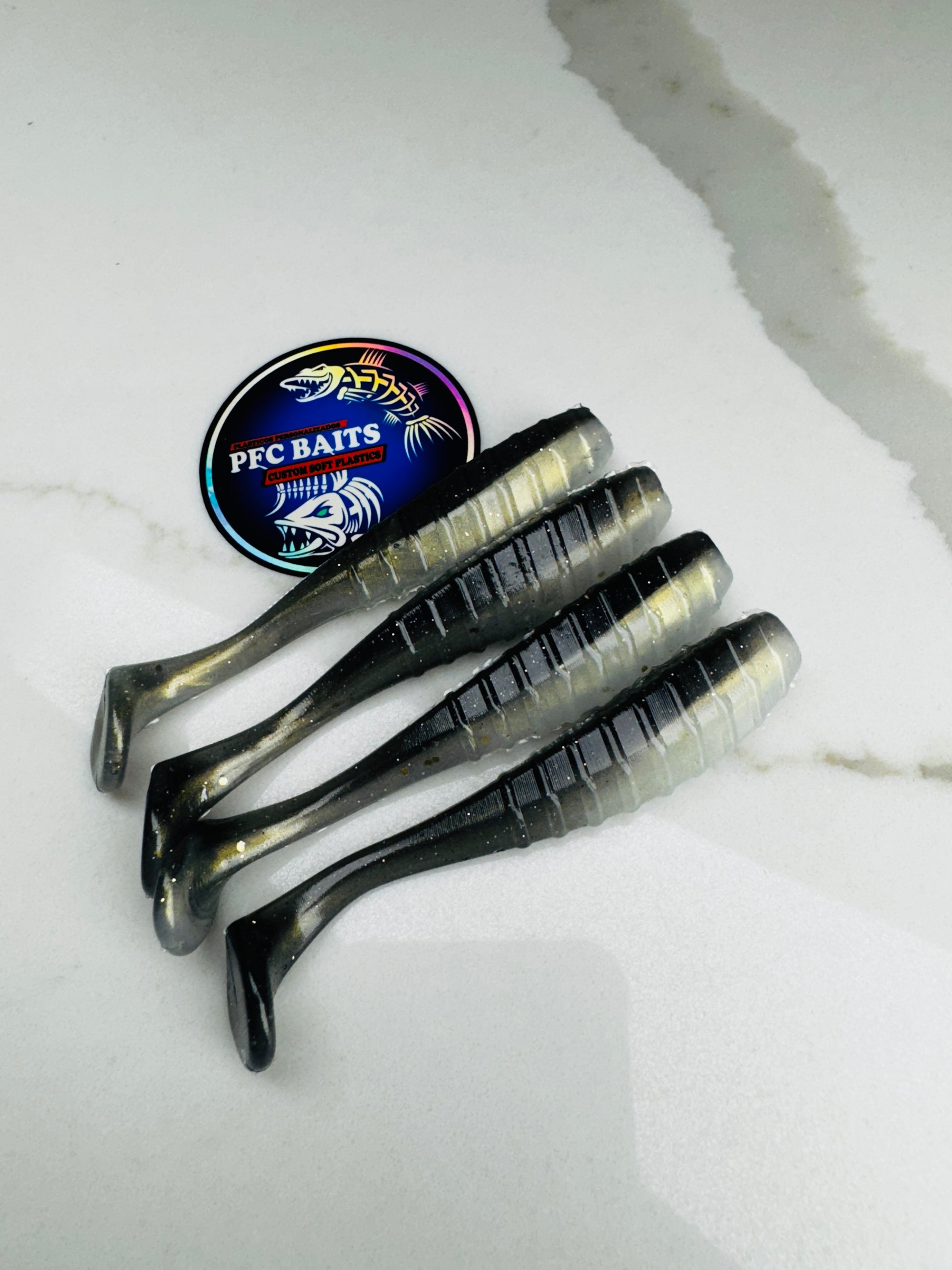 3.5 Inch Ribbed Fishing Bait (black and white )