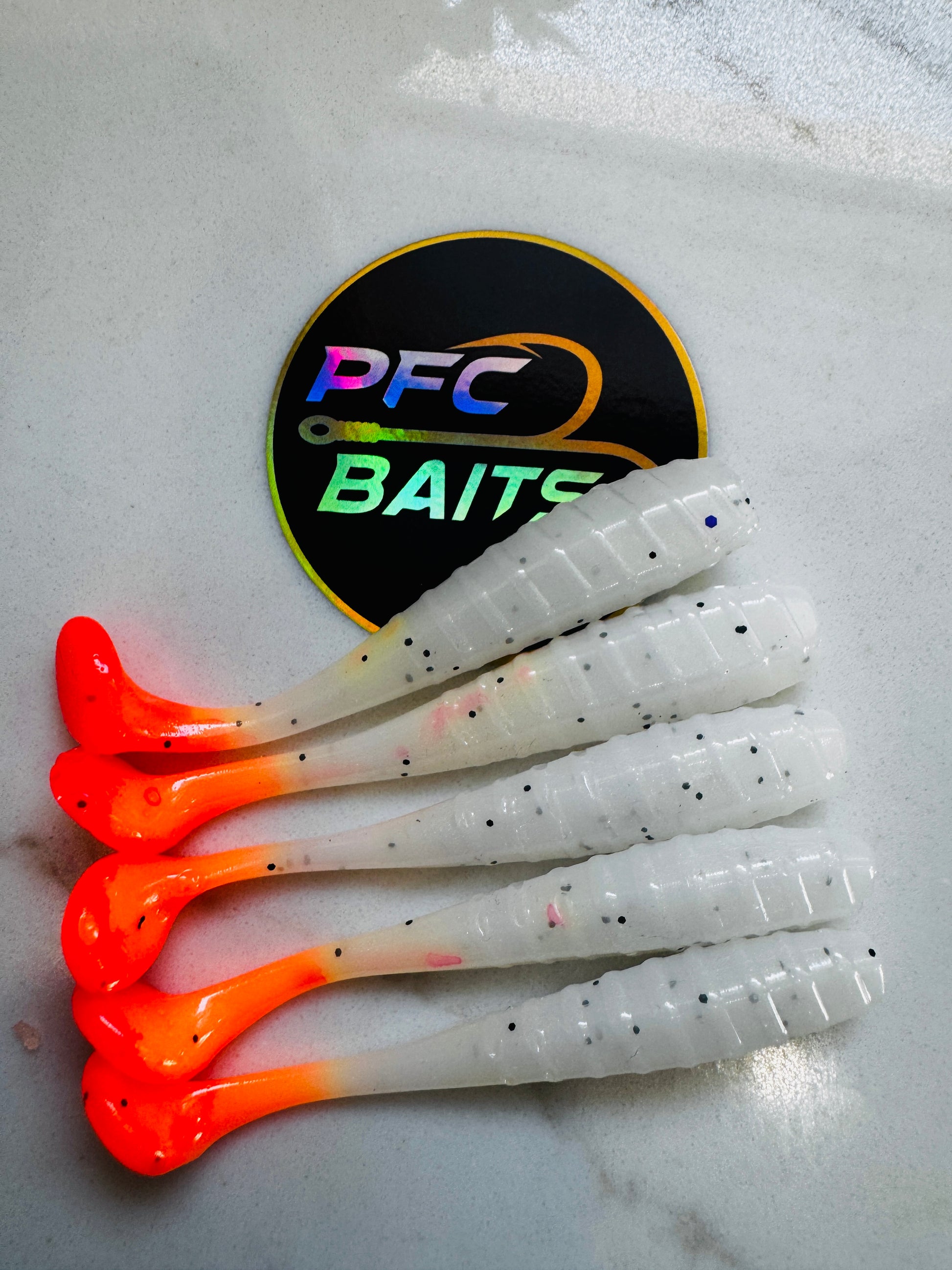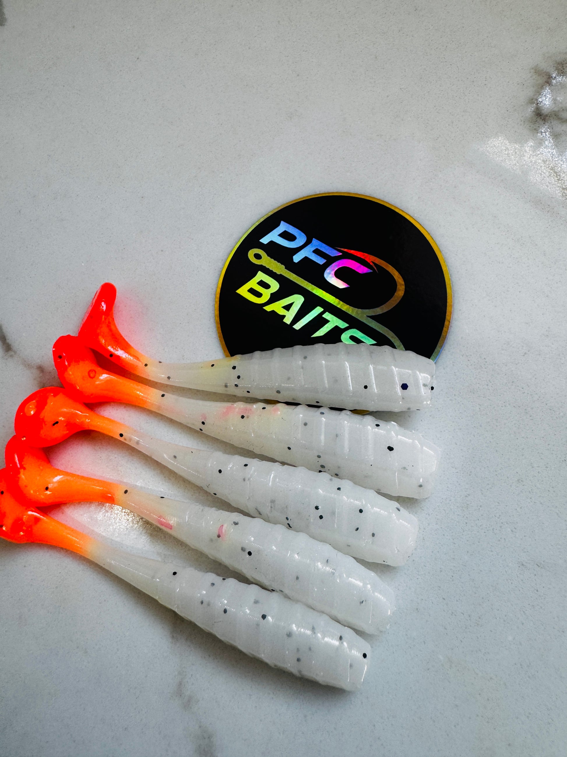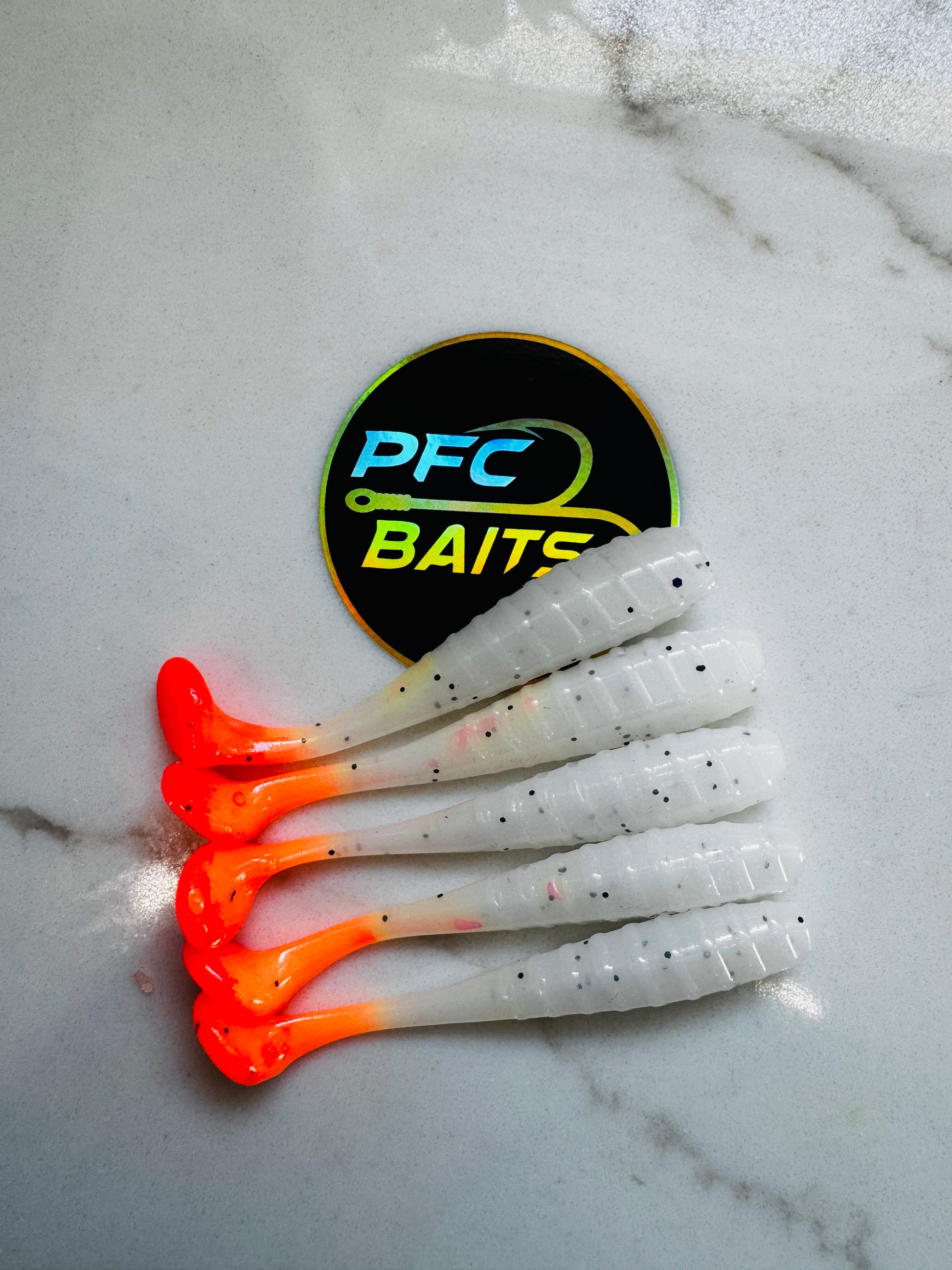 3 Inch Ribbed Fishing Bait (white with orange tail)