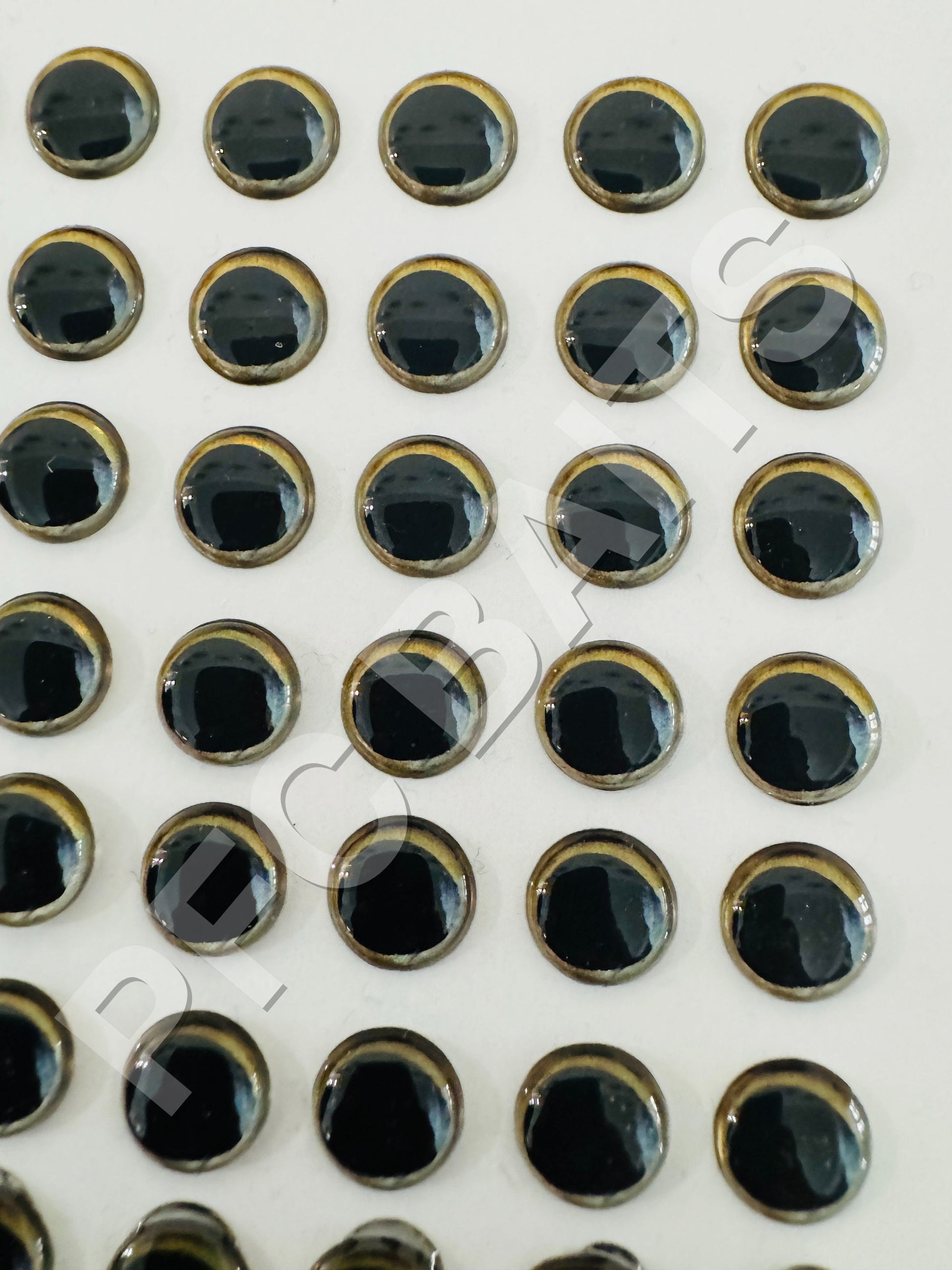 Our eyes are used using holographic backing. This backing produces a rainbow hued reflection which changes with the angle of the light.